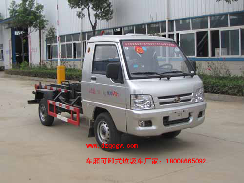 產品介紹:車廂可卸式垃圾車也叫拉臂式垃圾車,是一種采用高新設計可伸縮的鉤臂,實現垃圾廂的二次吊裝,自吊上放下,可自行傾倒垃圾。 該車結構簡單,操作穩(wěn)定方便,裝卸效率高,機械化程度高,節(jié)省人力。一車可帶多個大廂,在裝卸的運輸過程中可有效地避免二次污染。