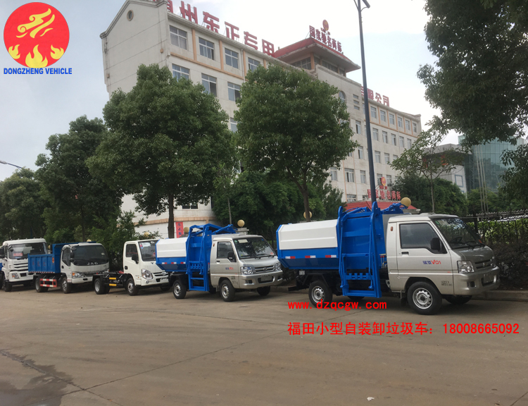 送往廣西的十五臺福田馭菱小型自裝卸式垃圾車已經調試完畢下線待發,該小型自裝卸式垃圾車采用2370mm軸距,柳州五菱國五汽油61馬力發動機,5檔箱,真空胎,垃圾車容積為3個方。