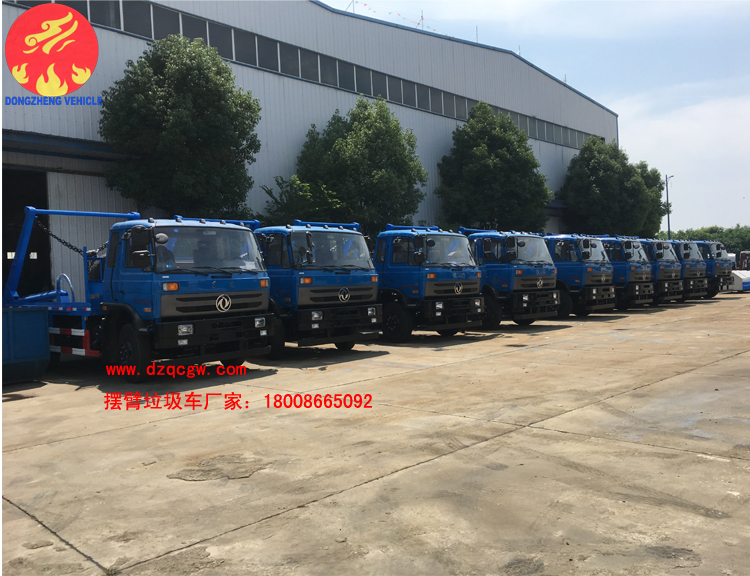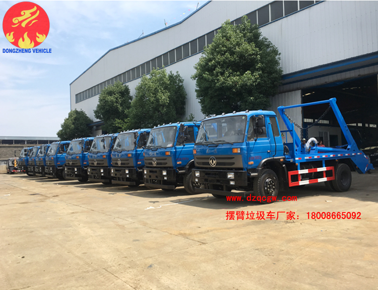 到新疆伊犁的15臺10方東風145擺臂垃圾車出廠