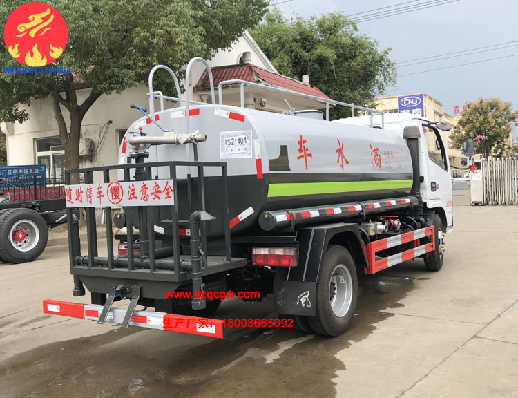 該批綠化噴灑車采用標準國六底盤,3308mm軸距,柴油115馬力國六發動機,5檔箱,鋼絲胎,帶ABS。罐體實際容積約5立方米。