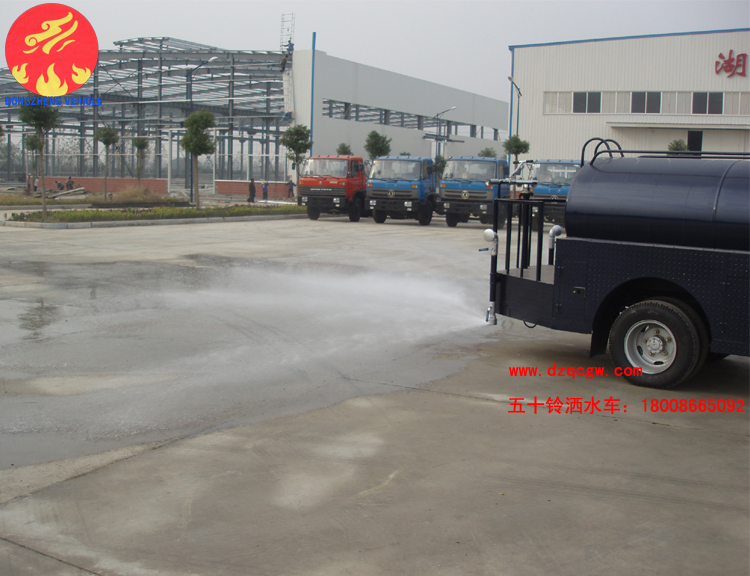 改裝部分:標配前沖、后灑、側噴、工作平臺、綠化高炮、自流閥、消防接口,輸水管3米2根,8噸以上罐體帶高位花灑2個,億豐泵或金龍泵,控制方式為手動。選裝氣動閥門控制;高位花灑,大鴨嘴,藥盤,罐體側面加裝萬向可調節噴頭,罐體后部壓塵噴灑裝置,兩個圓警燈或長警燈,LED箭頭燈,泵可選裝威龍泵或農藥噴霧裝置。