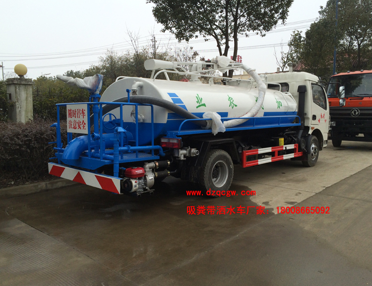 P.S. 可根據客戶要求加裝灑水功能,水罐糞罐獨立分倉,即可吸糞又可灑水,一車兩用。加裝水箱或工具箱,加裝液位報警裝置。