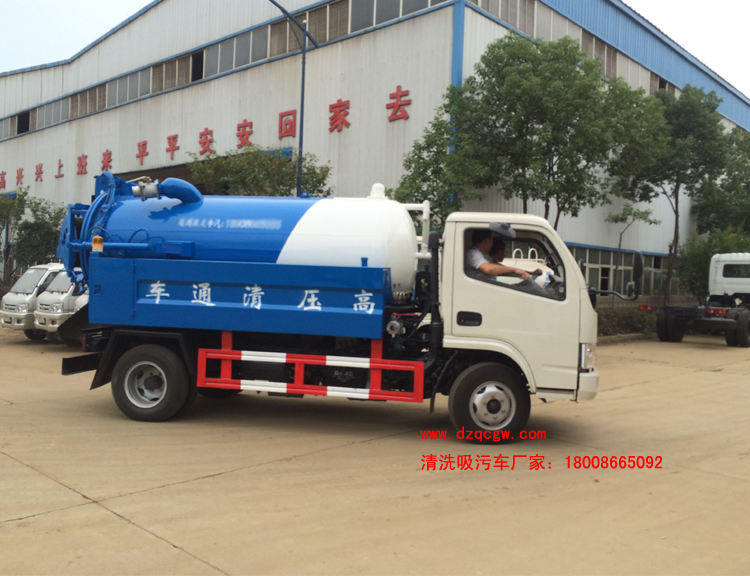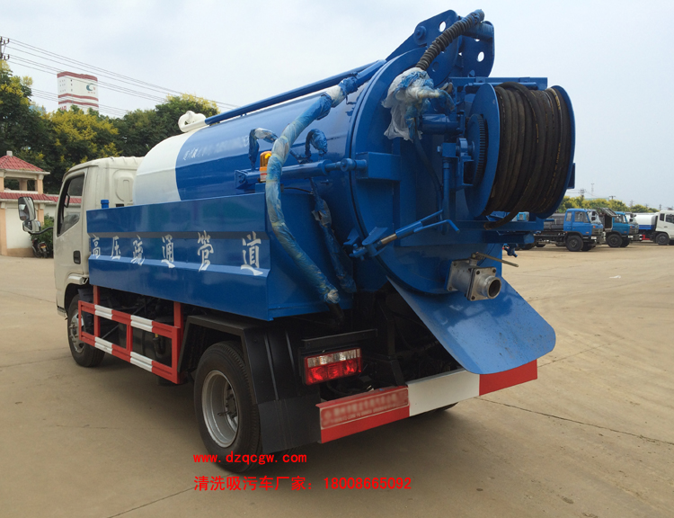底盤說(shuō)明:東風(fēng)福瑞卡國(guó)五單排可翻轉(zhuǎn)駕駛室,3308mm軸距,多種可選國(guó)五發(fā)動(dòng)機(jī),5檔變速箱,前橋2噸,后橋4噸,7.00R16鋼絲胎,方向助力,ABS,空調(diào),中控鎖,電動(dòng)門窗。吸污罐體有效容積:1.9立方米,水罐罐體有效容積:1.5立方米。 清洗部分主要配備:意大利進(jìn)口16Mpa高壓泵。國(guó)產(chǎn)配套件液壓 驅(qū)動(dòng)系統(tǒng),60米19mm高壓軟管,液壓驅(qū)動(dòng)卷盤,碳鋼噴頭(10個(gè)),夾心取力器,罐體形狀為圓罐,手動(dòng)操作。主要用于清洗城市下水道、管道的沉積物、死角泥溝的疏通。也可用于清洗工業(yè)排液管道、壁面等,緊急時(shí)可用于救火。 吸污部分主要配備:國(guó)產(chǎn)多路閥、油缸;國(guó)產(chǎn)高質(zhì)量真空泵,油水分離器,四通閥,洗手裝置。罐體后封頭球閥控制自流口1個(gè),1個(gè)視污窗,1根7米吸糞管,普通油漆。一次性成型舉升式罐體,罐體兩則油缸,后蓋液壓開啟,機(jī)械鎖緊,帶液位報(bào)警。主要用于下水道、雨水井、檢查井、化糞池及各種溝渠內(nèi)的污泥、糞便或石油化工廠污水池淤積物的抽吸、裝運(yùn)和排卸。 P.S:水罐和吸污罐為兩個(gè)獨(dú)立罐體,清洗功能時(shí)用水罐,吸污功能時(shí)用吸污罐,清洗吸污兩種功能不同時(shí)使用。可加裝灑水裝置,選裝低水位報(bào)警裝置。 |