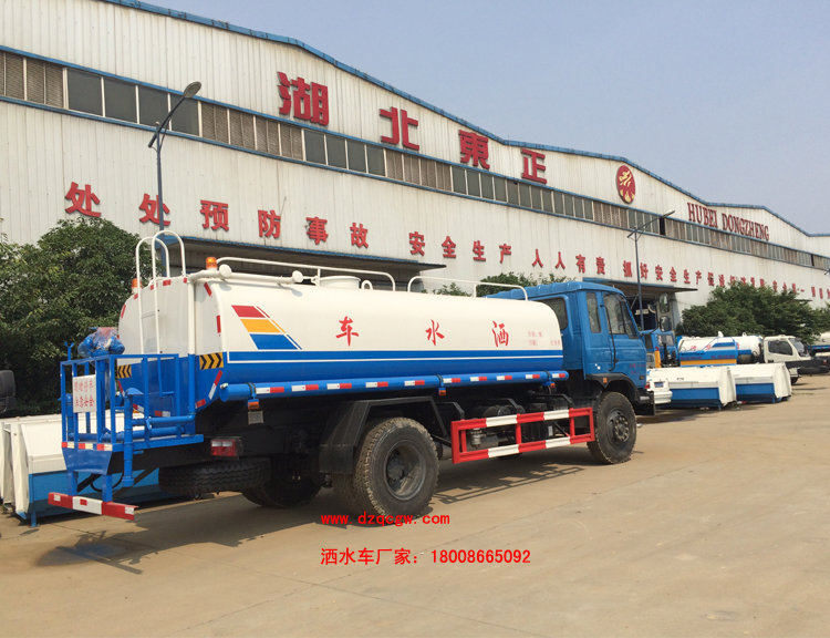 改裝部分:標配前沖、后灑、側噴、工作平臺、綠化高炮、自流閥、消防接口,輸水管3米2根,8噸以上罐體帶高位花灑2個,億豐泵或金龍泵,控制方式為手動。選裝氣動閥門控制;高位花灑,大鴨嘴,藥盤,罐體側面加裝萬向可調節噴頭,罐體后部壓塵噴灑裝置,兩個圓警燈或長警燈,LED箭頭燈,泵可選裝威龍泵或農藥噴霧裝置。