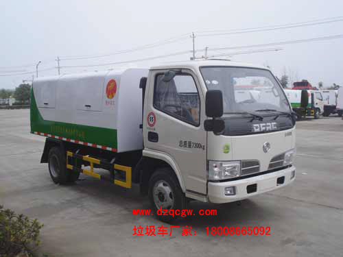 車輛名稱: 東風福瑞卡自卸式垃圾車 整車型號: SZD5070ZLJ4(炎帝牌)